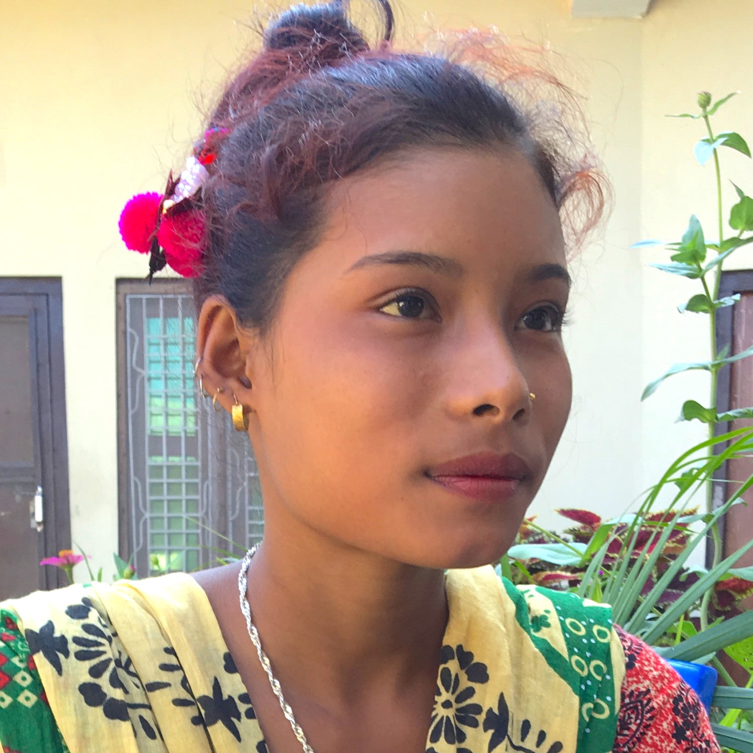 This blue-eyed tiger was embroidered by Alina Chaudhary in Bardiya, Central Nepal, in honor of tigers that live in a nearby National Park. Alina then made the tote bag and added the tiger and blue stripes.